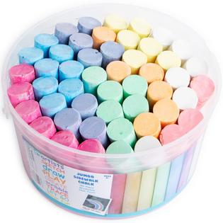 In the opposite corner of the room is a bucket of sidewalk chalk.