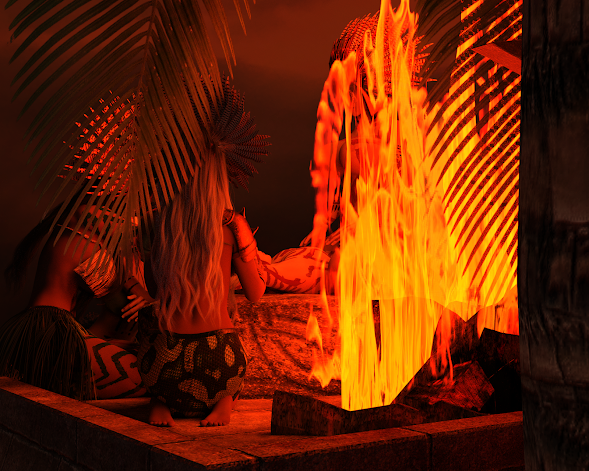 Yantraki stared Liam in the eyes as he was placed onto the altar. The girls that carried him up the temple quickly hurried back down as he heard the tribe shrieks and the beating of drums getting louder as well as the shaking of hip sounded through the motion of the grass skirts rustling. As Liam lay on the altar, he tried to move again but his arms and legs are quickly seized by the surrounding girls. Sruna and the brown-haired girl took his legs and help them down, while Aosliope and Takire held his arms, lastly, Kenyanire held his head in her arms as she propped him up enough so that he could watch as Yantraki climbed onto the altar.