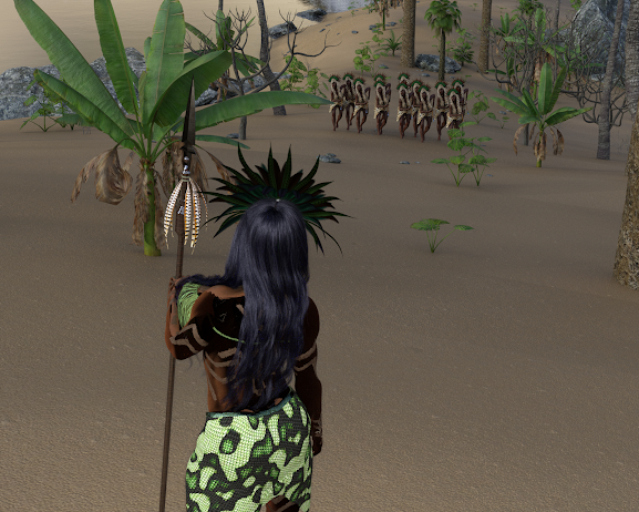 Deeper into the jungle, Thormoenia stood on the edge of a small hill, staring down towards a wall of Amazons armed with spears down by the coast. This coast was the crossing area between the Sun Tribe’s part of the island and theirs, the Kali Kanacka Tribe. Thormoenia counted the warriors. There were only 12, meaning this was probably only a scouting party that came to see why the wat party haven’t returned yet.
