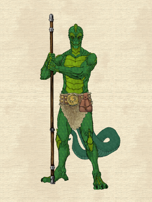 Slowly the Lizardman approaches the pillar and touches it like the others he found.