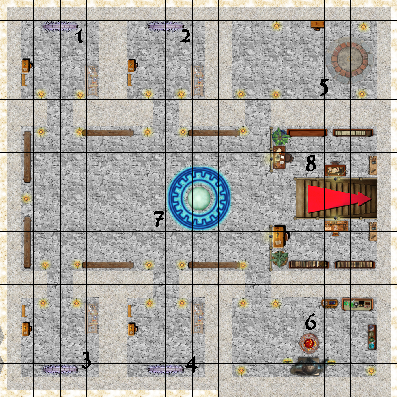 The other object in the room is a stone arc that looks like a doorframe but stands empty about a handspan from the wall. It is fused to the floor and covered in a lot of strange symbols.
