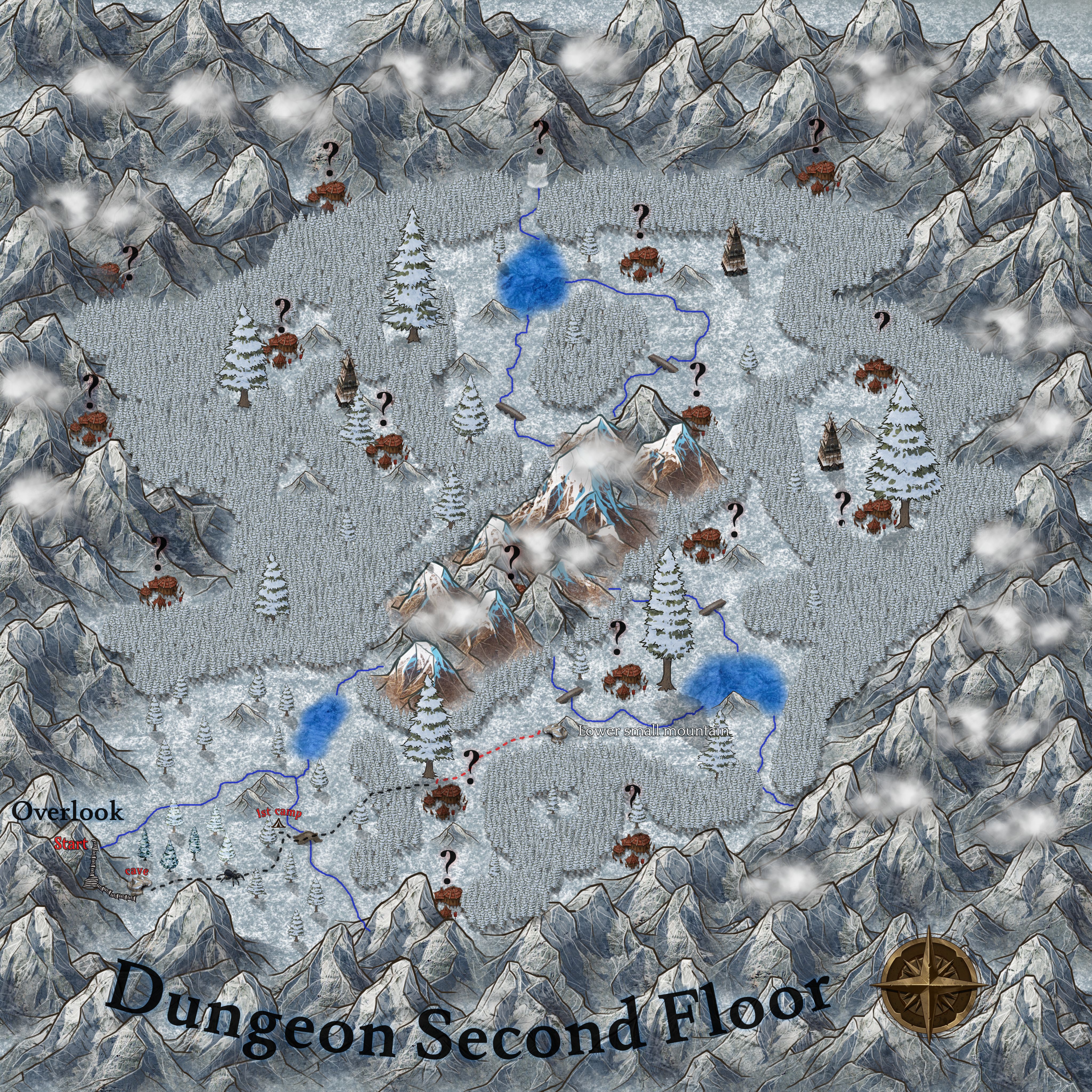Titus pulled out a map of the level and showed me where we were going. “Will head for lower small mountain there is a dungeon survival cave there.”