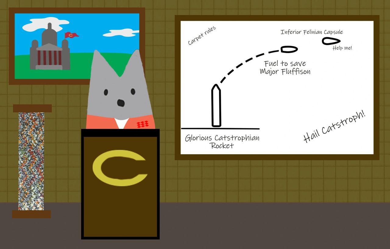 Every cat on Catalonia was now glued to their television, anxiously awaiting news about the brave catronaut’s fate. As good wishes from throughout Catalonia poured into Felinia, the leaders of Catstroph fumed as their plan to humiliate their enemy had spectacularly backfired.