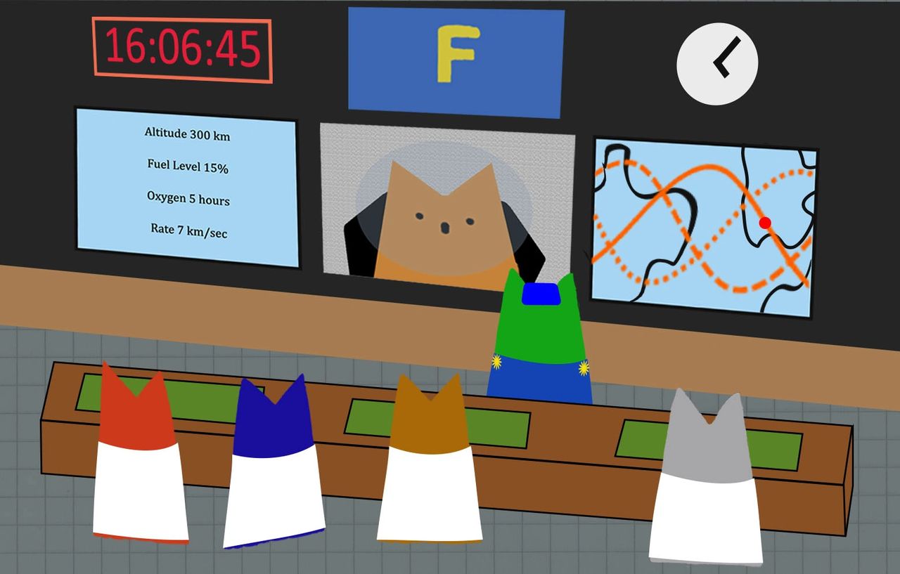 Felinia’s best rocket scientists were dispatched to Catstroph to help design a mechanism that would allow the fuel transfer to Major Tom’s ship. Even working around the clock with every available resource, Major Tom was down to five hours of oxygen when the Catstrophian rocket was ready.