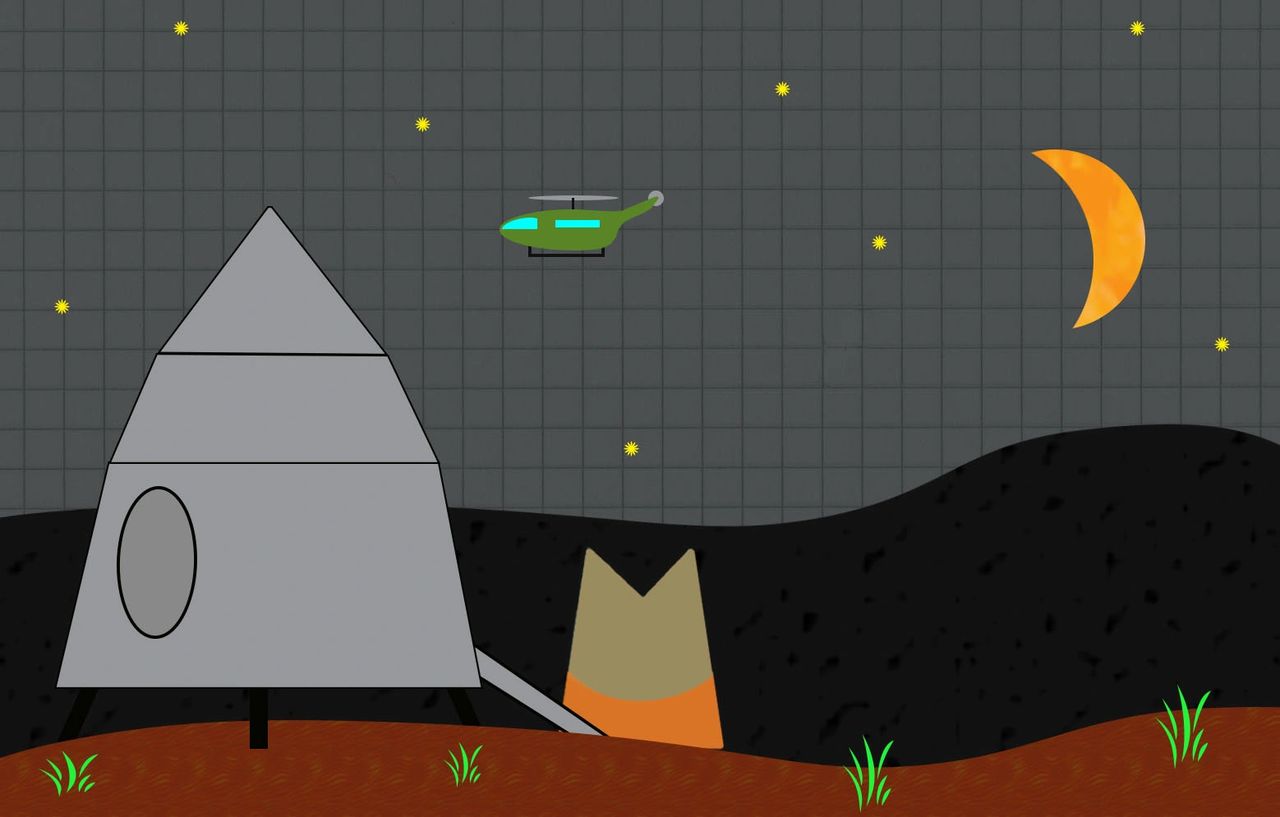 The sound of a helicopter could now be heard. Soon search lights flitted around the capsule and the helicopter landed a short distance away. Several Catstrophian soldiers and a medical team jumped out and hurried over to Major Tom, who wobbly stood up to greet them.