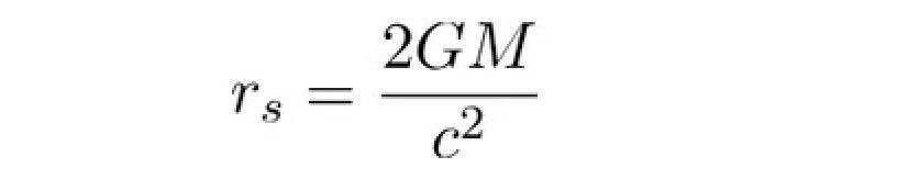 If this term were to equal zero then time for someone near the black hole would stop. The distance from the black hole at which this condition occurs is the definition of the event horizon. Setting the equation above equal to zero, we can solve for the location of the event horizon (also known as the Schwarzschild radius).