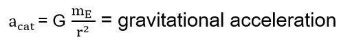 Notice that since the acceleration has nothing to do with the mass of the cats, it’s the same for both of them. Since both cats have the same acceleration, they will fall at the same speed. If you plug in all the numbers in the above equation you get a gravitational acceleration of 32.174 feet per second squared. Any object you drop will have this exact same acceleration and so fall with the same speed.