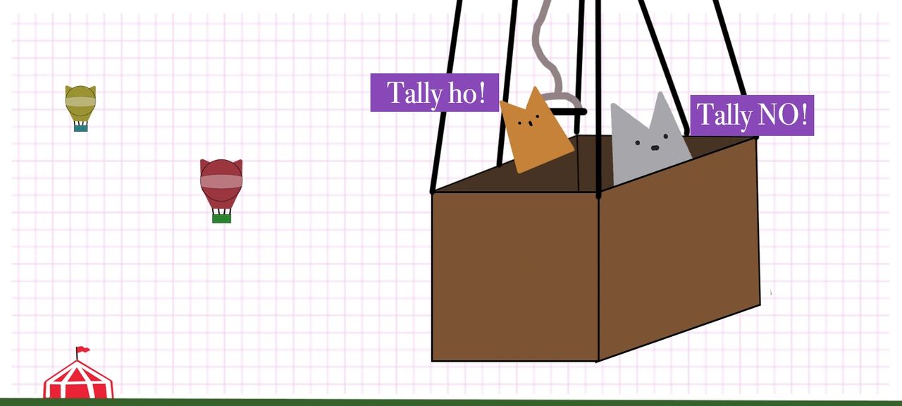 Henri looked at her sternly. “We could have gotten you another balloon.” Seeing the kitten’s crestfallen face, Henri sighed and patted her on the head. “Let’s see about getting ourselves down.” Pointing at the two ropes hanging down from the balloon, she continued. “I think one of these ropes opens the top of the balloon to let air out, but we have to be careful because one of …”