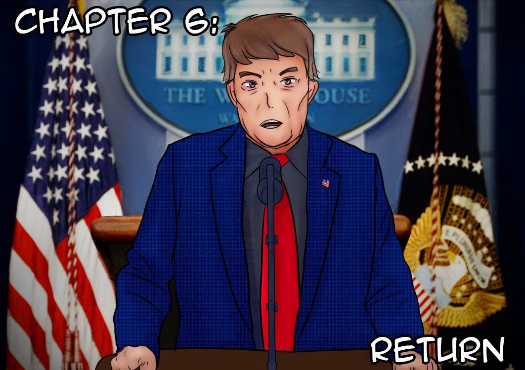 "We must go the top secret bunker, ******. We will leave in 20 minutes." I followed the men outside the oval office room and into the bulk of the presidential palace. It was quite a beautiful place, filled with all the portraits of all the past presidents. Chandeliers are found in the ceiling, we were stepping on the finest silk carpets, all while I was being assisted by the strongest men in the world. Is this what being a president feels like? Tremendous! All very important looking people are also accompanied by these men in black. But now, I have one thing in mind. I have to return to original body, bigly.
