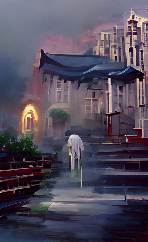 The three of them walked up the steps until they reached the red crime scene tape blocking their way. In front of them, they could see what seems like a floating object draped in a white curtain. The aura beneath and around it was thick and heavy, permeating throughout the area like mist.