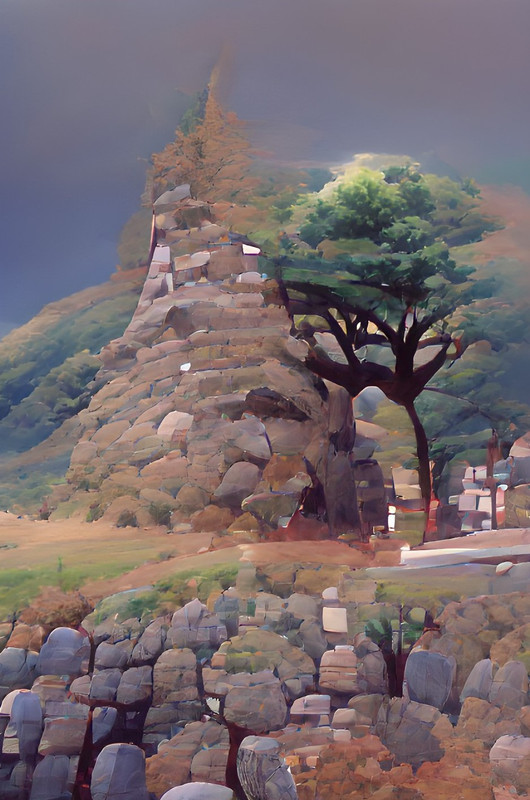 Shen walked slowly up the hill. Soon, a large tree rose into view, next to it was a tall structure built entirely from stone. It was almost like a tower.