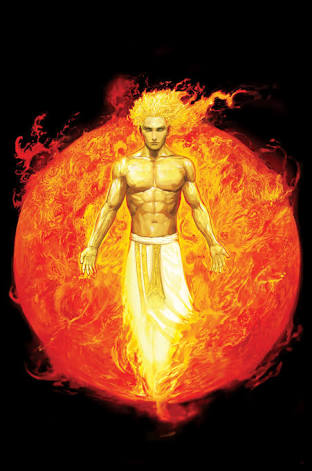 Ace transform into god of sun... A giant filled with sun energy and a spear on his hands aiming at Jason