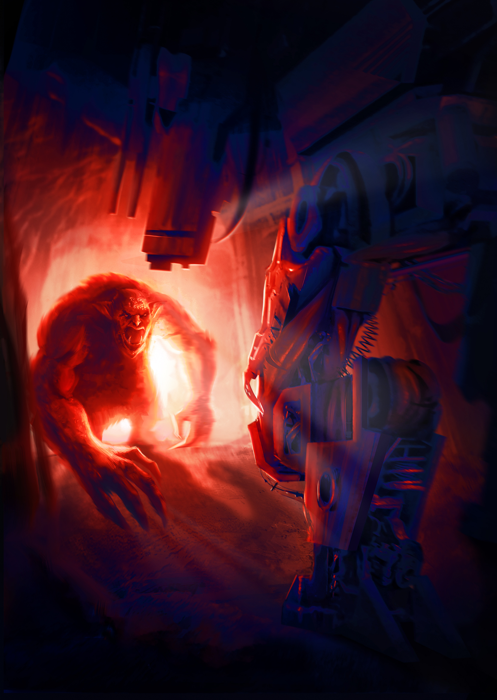 A moment later, a flashbang grenade showered the cave in blinding white light. My sensors were unaffected, but the beast faltered, fumbling blindly around with its hands. The perfect moment.