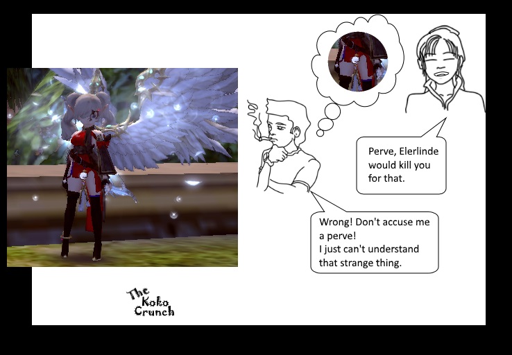 There was this time I logged in, only me and one vice guild master were around. The vice guild-master, the punisher to rulebreakers, the nerfed sniper before, Elerlinde. When I was not yet member in the KokoCrunch, he would carry his members who complained, "We need healer." He then replied, "I don't need healer. I have dodge."