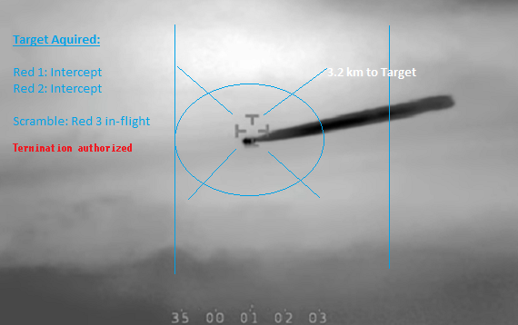 The unknown jet disappeared and reappeared 10km from its original position. Our fighter hit its afterburners. Even from this distance away the bright glow and jets streaked across the sky towards the fleeing craft.