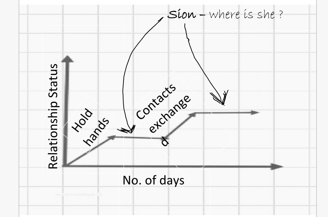 Narrator – As their relationship begins , they started holding hands first for the starting days , then for some days Sia was absent , after more days When Sia was present in school , they both decided to exchange contacts , after some more days , Sia was absent again .