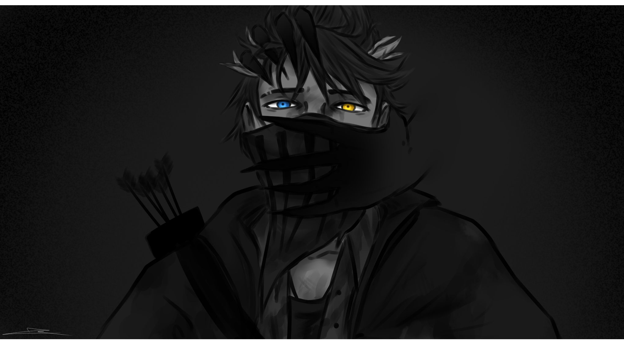 It kept running, pulling me across the ground, holding me by my hood. I tried to free myself but it's grip was too strong. After a while it stopped running, but before I had time to adjust and attack back, it lifted me up to the point I could see it's black, demonic eyes staring into me. It was hard to believe that at some point this monster was an ordinary human before. It then threw me against a tree so hard the tree nearly broke against the strain. I was not so fortunate. I felt pain in every bone in my body, especially in my right leg. I looked down and saw that a large shard of wood had pierced through the fabric of my pants, already soaked with blood. I quickly pulled it out and I groaned from the pain. I tried to stand up but I couldn't lift my body, hitting the tree knocked the strength right out of me. The monster was looming in front of me, ready in every way to attack and rip me to shreds, but it didn't move. I felt for my knife, but it had dropped in the scuffle, so I quickly improvised and grabbed one of my arrows as a weapon. Even still, it just... Stood there silently.