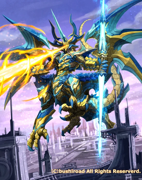 And last one and the most badass of all, Glorious Reigning Dragon. The strange thing about this dragon is that he does not have wings like other dragons that came from . His color scheme is gold, blue, and some red. His weapon of choice is a lance-shaped sword. And like a certain horse-riding Saber face, he likes to bast the enemies with the energy beam formed from the lance.