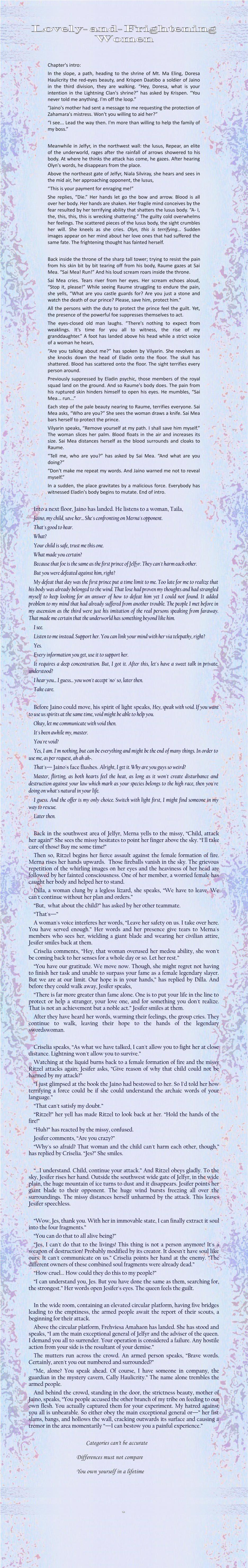 In the slope, a path, heading to the shrine of Mt. Ma Eling, Doresa Haulicrity the red-eyes beauty, and Krispen Daatibo a soldier of Jaino in the third division, they are walking. “Hey, Doresa, what is your intention in the Lightning Clan's shrine?” has asked by Krispen. “You never told me anything. I'm off the loop.”