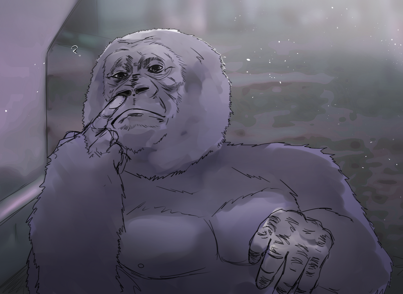 It was then, Renma felt a sudden pang in his head. He turned at Tier and saw the gorilla impostor was completely still. Tier’s eyes were blankly staring at the ground.