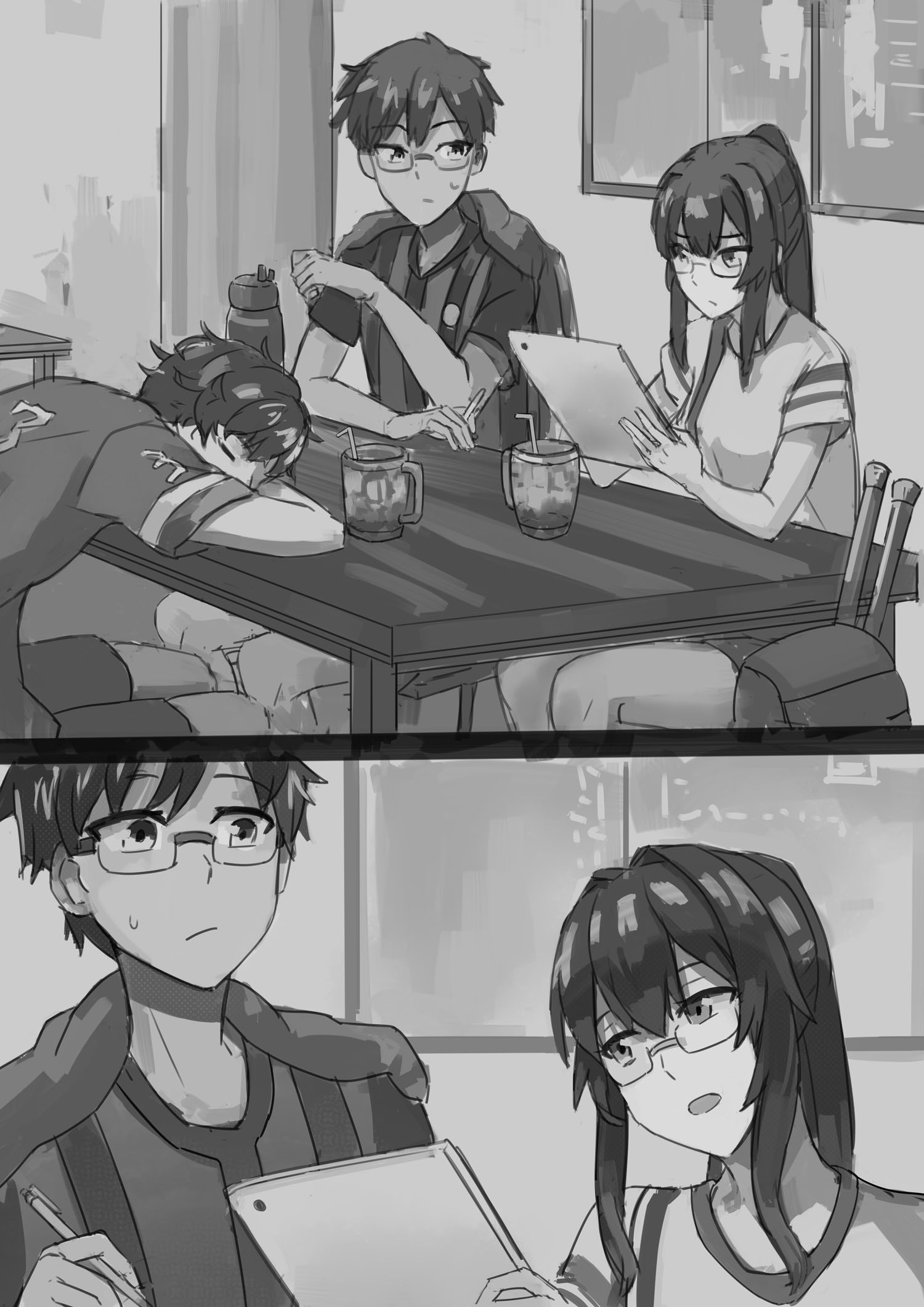 Ega went home immediately after lunch, he seemed to be disturbed the most with Mana’s sulking. Eggi, on the other hand, proclaimed he wanted to join the study session only to fall asleep mere moments later. This technically left only Pras and Mana together as what had been proposed by Mana earlier. That time her mood turned brighter.