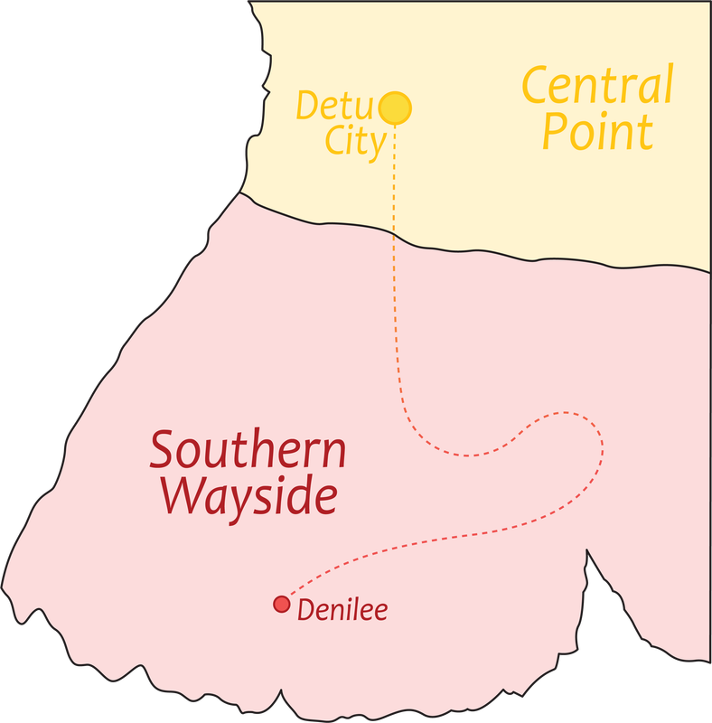 Immediately, the difference to Detu City was on full display. The Southern Wayside’s foliage had always been distinguished for its year-round autumn colours, and nowhere was that clearer than Denilee. A ring of trees bordered the outside of the town, following it as it travelled through the forest with long roads of buildings and houses. Businesses were tightly packed, each fairly humble in their presentation, but it was clear the town stretched much further than was apparent from main street.